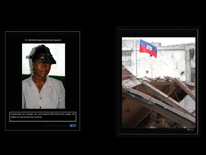 AAO Task Force for Haiti Recovery David W. Parke II MD, ex-officio Robert Butner, MD Claude Cowan, MD Mildred MG Olivier, MD Daniel La. Roche, MD Richard Lee, MD Stephanie Marioneaux, MD Nelson Marques, chair, Pan American Ophthalmological Foundation Kaz Soong, MD 100 percent of donations sent to Haiti