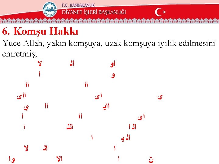 2. Ana-Baba Hakkı Kulların hakları söz konusu olduğunda, akla ilk önce anababalar gelir. Zira ebeveynler, çocuklarının üzerinde en çok emeği olan insanlardır. Bu yüzden Yüce Rabbimiz, kendisine kulluk emrinden hemen sonra, ana-babaya iyi davranmayı emretmiş. ﻭ ﻻ ﺍﻟ ﺍﻭ ﺍﺍ ﺍ ﺍﻯ ﻱ ﺍﺍﻳ ﺍﺍﻯ ﺍﺍ ﺍﻯ ﻱ ﺍﺍ ﺍﻟﻧ ﺍﻟ ﺍ ﺍﻟ ﻳ ﺍ