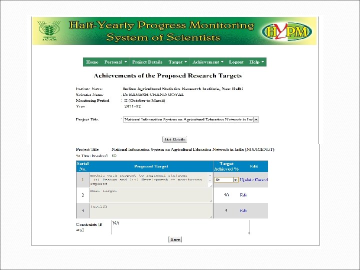 HalfYearly Progress Monitoring of Scientists in ICAR HYPM