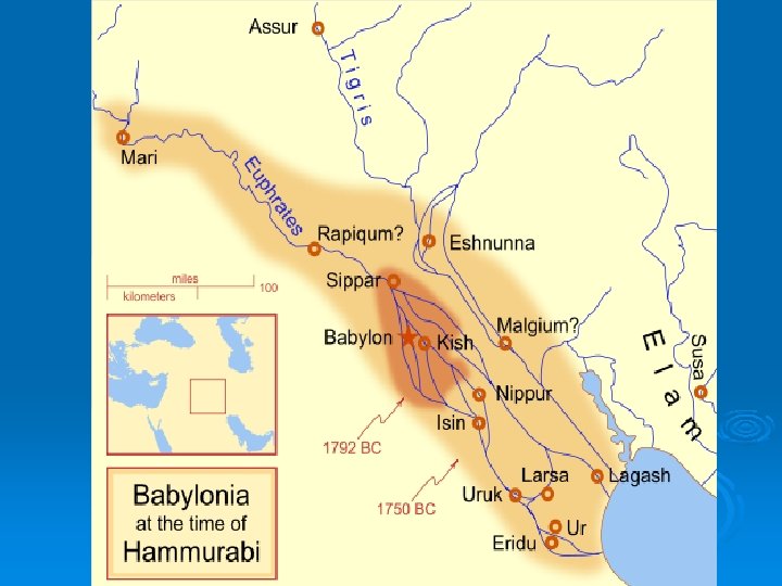 Uruk 2 Ø Uruk’s agricultural surplus and large population base facilitated processes such as trade, specialization of crafts and the evolution of writing. Ø Evidence from evacuations such as extensive pottery and the earliest known tablets of writing support these events. Ø At its height c. 2900 BCE, Uruk probably had 50, 000 to 80, 000 residents living in four square miles of walled area, the largest city in the world at the time. Ø The semi-mythical king or king-priest Gilgamesh, according to the chronology presented in the Sumerian king list, ruled Uruk in the 27 th century BCE.
