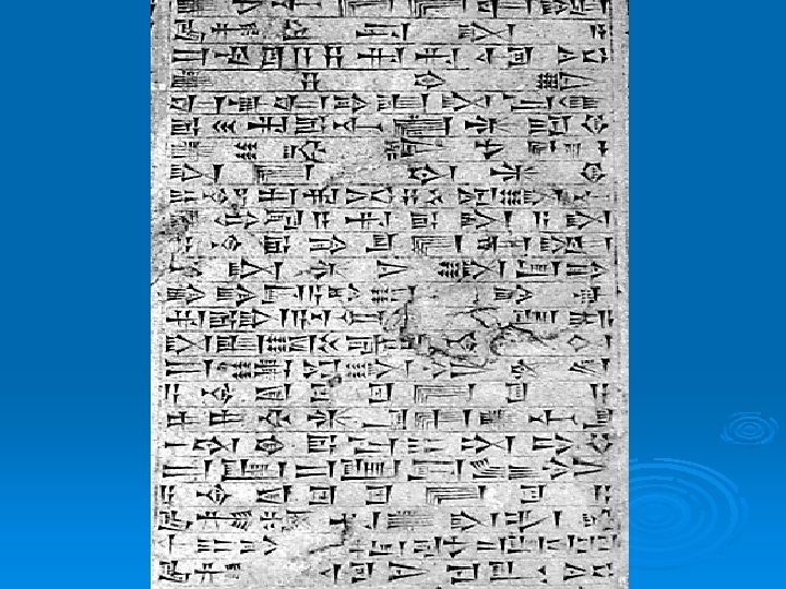 Cuneiform Script Ø The earliest know writing system in the world. Ø Cuneiform writing emerged in the Sumerian civilization of southern Iraq around 34 th century BCE during the middle Uruk period, beginning as a pictographic system of writing. Ø Clay tokens had been used for some form of recordkeeping in Mesopotamia since perhaps as early as c. 8, 000 BCE, according to some estimates. Ø Cuneiform documents were written on clay tablets, by means of a reed stylus.