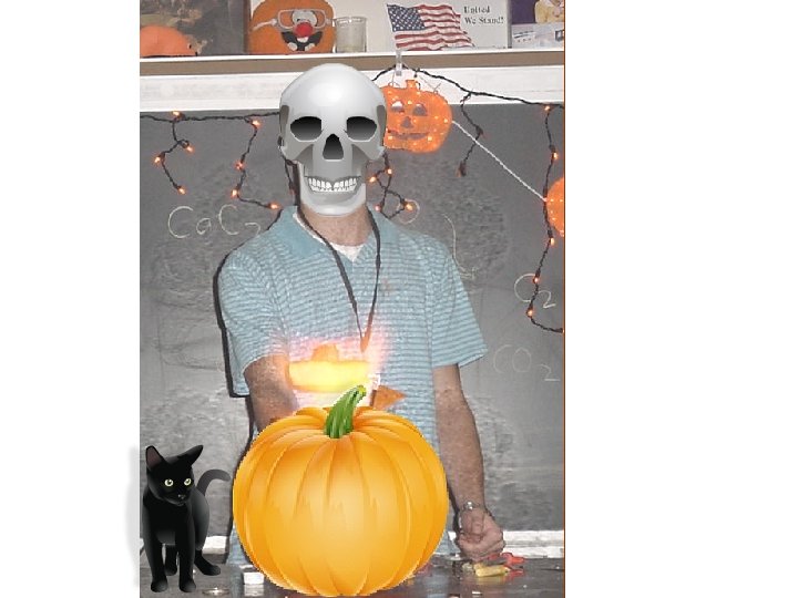 Materials to Look for Roller accident video clip Jib-Jab video Ear protection , safety glasses leather gloves (3 sets) rubber mallet and hammer squegee’s to clean tables funnel Tesla coil rubber stoppers for 2 -liter bottle balloons 4 – green 2 -liter bottles CAUTION and DANGER tape orange Rubbermaid cooler for drinks Heavy garbage bags and a clean large cart to dispose of old pumpkins Purchase: WALMART: 6 pumpkins & have students bring in pumpkins to explode 6 bottles of orange Kool-Aid for witches brew mini-swimming pool to hold mess large balloons may need 6 bottle of 3% hydrogen peroxide be sure to have good piezoelectric starters FLINN: Universal indicator (1 L) medium test tubes 500 m. L of 30% H 2 O 2 luminal reagents Potassium iodide salt