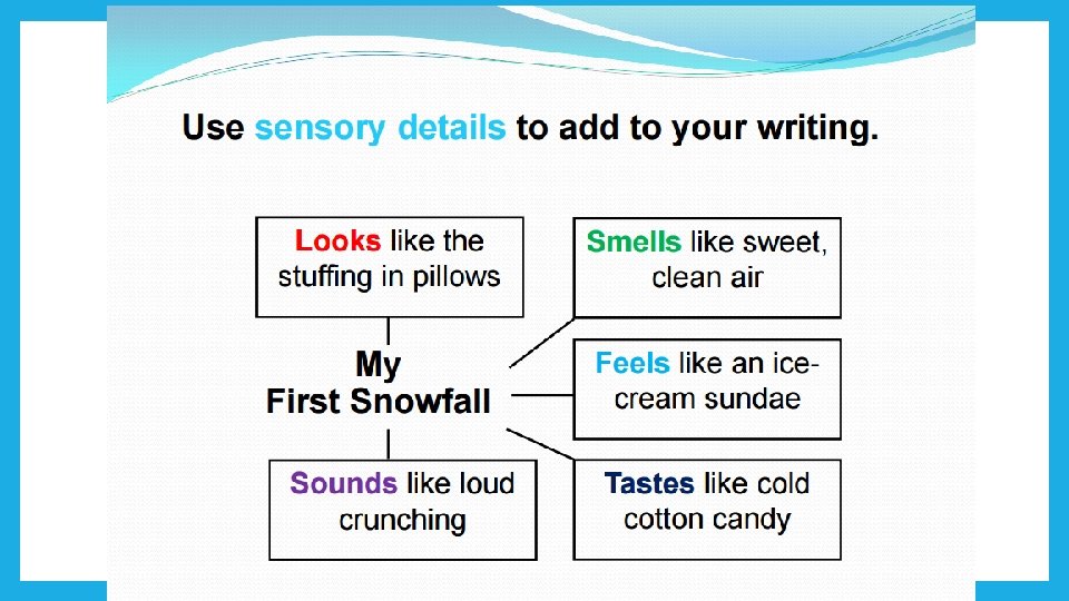 Practice: Cedar Point (carnival) • Brainstorm 2 sensory descriptions for EACH of the 5 senses