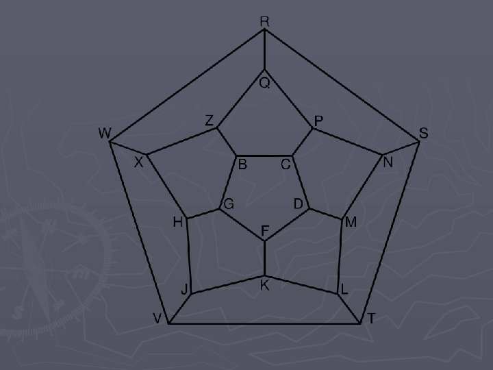 Icosian Game ► Vertices were meant to represent major cities in Europe. ► Goal is to visit all 20 cities. ► Let’s PLAY!!!!!!