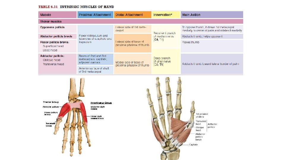 Muscles of the hand Thenar muscles Opponens pollicis Flexor pollicis brevis Abductor pollicis brevis