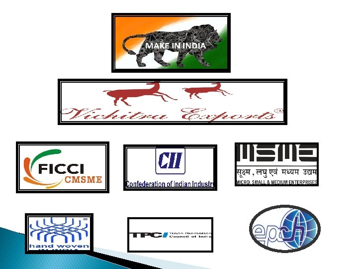 Recognitions � � � � � Registered Member FICCI-CMSME, New Delhi. Registered Member CII (Confederation of Indian Industries) New Delhi. Registered member of , Jt. Director General of Foreign Trade (DGFT) , New Delhi Registered since Dt. 23/02/1996 as Merchant Exporter. “Handloom Mark”, awarded by Textiles Committee, Government of INDIA, New Delhi. Registered member, Textile Committee Govt. Of India, New Delhi. Registered member Export Promotion Council for Handicrafts (EPCH), Govt. of India. Registered under Micro Small & Medium Enterprises (M. S. M. E) Registered member Trade Promotion Council of India (TPCI), New Delhi, India. Registered member AMTC (Asia Pacific MSME Trade Coalition) Singapore.