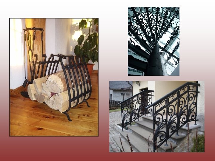 Metalwork • These days, ancient blacksmithing techniques of bending, stretching and inter twining are seen in elements of Riga's architecture. Exhibitions of applied art demonstrate that recently master blacksmiths have mostly turned to creation of interior decoration candlesticks, fireplace accessories, and metal ornaments for articles of woodwork. These have pre served the historical traditions of manufacture and decoration.
