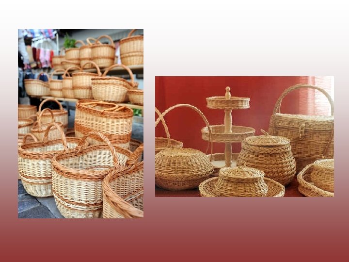 Basketry • Today folk art basketry, thanks to its shapes, structure and diver sity, also displays artistic value outside its practical application. Currently amongst folk art stu dios basketry workshops are the most active.