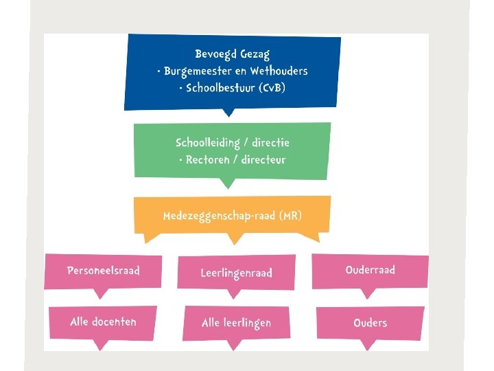 Een paar algemene regels • Een MR is op school verplicht! • Bij meerdere scholen onder één bestuur is een GMR verplicht • Leerlingenraad is NIET verplicht • Je hebt recht op trainingen Zie art. 28 van de WMS. Of via WMS. nl • Je kan vragen om studiepunten, vrijstelling, of vergoeding (zie bijlage)