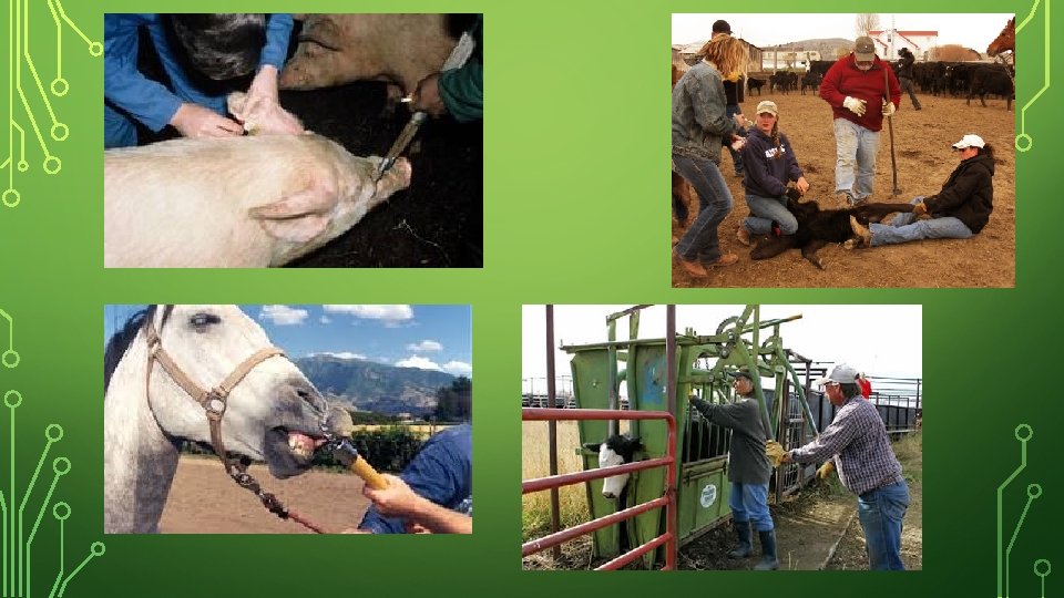 WHEN IS ANIMAL RESTRAINT NEEDED? • It is common practice to restrain animals during examination and treatment. • It is not uncommon for food animals to be restrained numerous times from birth to slaughter. • Companion animals are normally restrained for medical examinations and treatment.