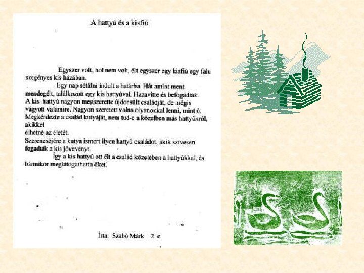 Preliminary tasks Andersen’s biography and era – independent reasearch Preparation Reading Andersen’s fairy tales – for example: • The Little Match Girl • The Little Mermaid • Thumbelina • The Ugly Duckling • The Emperor’s New Clothes • The Snow Queen Analysis of the fairy tale chosen by the children - The Ugly Duckling • Visiting the zoo: comparison of the duck and the swan • Visual representation of the experience: drawing, forming clay, origami etc. • Dividing the fairy tale by story line (chapters) and seasons • Creating illustration: painting, forming wax, computer animation etc. • Writing of own fairy tales • Exhibition of the pieces of artwork created by the children in the school • Puppet show