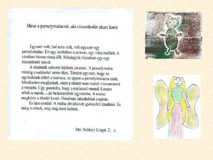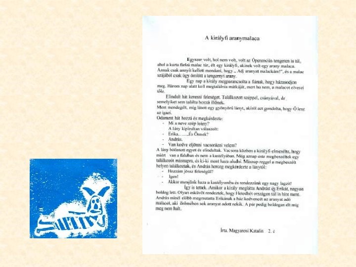 Saját mese írása az anderseni szereplők felhasználásával Az illusztrációk lino-metszés technikával készültek