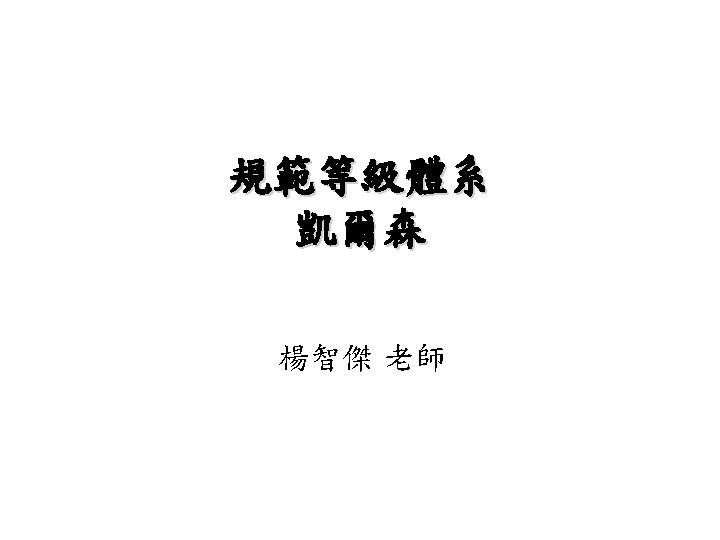 規範等級體系 • a legal system was a hierarchy of norms. Each norm, or legal proposition, was validated by a previous norm leading back to a fundamental postulate, or Grundnorm; for example, the will of the queen in Parliament. Thus the law and the state were essentially the same. • The basic norm or Grundnorm as Kelson calls it, is the Constitution which acquires validity from the fact of social acceptance or recognition.