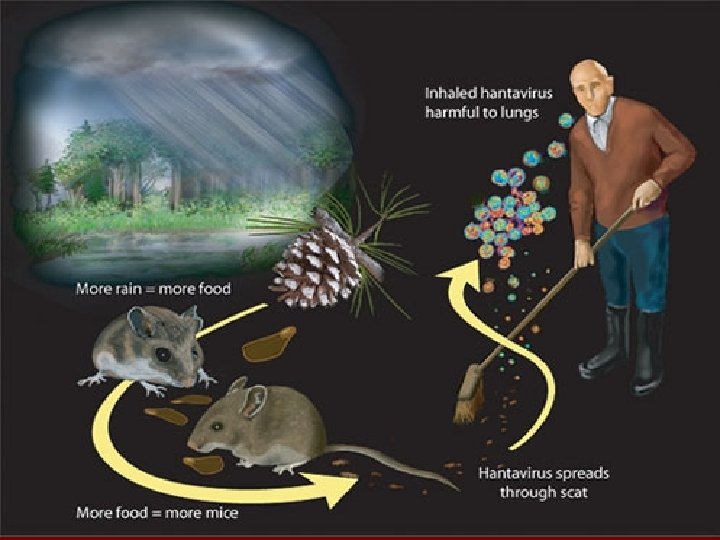 Sinais clínicos n HPS – tosse e dispnéia – febre, dores de cabeça e vômitos – insuficiência respiratória aguda!!!! n HFSR – insuficiência renal, uremia, oligúria – Diátese hemorrágica - petéquias, sangramento gengival, etc – febre, dores e vômitos