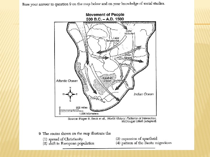 MIGRATION � Early people of Africa lived throughout Sahara region until desertification dried it out � Forced people to move � Contributed to rich diversity of Africa � Traced by scholars who studied language patterns of Africans � Bantu speaking people migrated and adapted farming methods to new climates