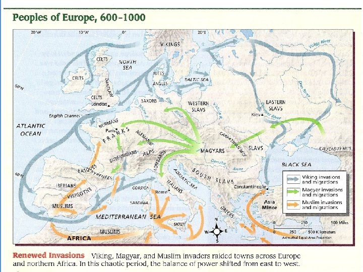 The Decline of the Frankish Empire • Charlemagne’s descendants did not inherit his energy and ability. – The Empires strength began to decline rapidly • It eventually began to divide and split. – Conflict occurred between the western and eastern kingdoms. • Charlemagne’s kingdom was further undermined by invasions from different groups.