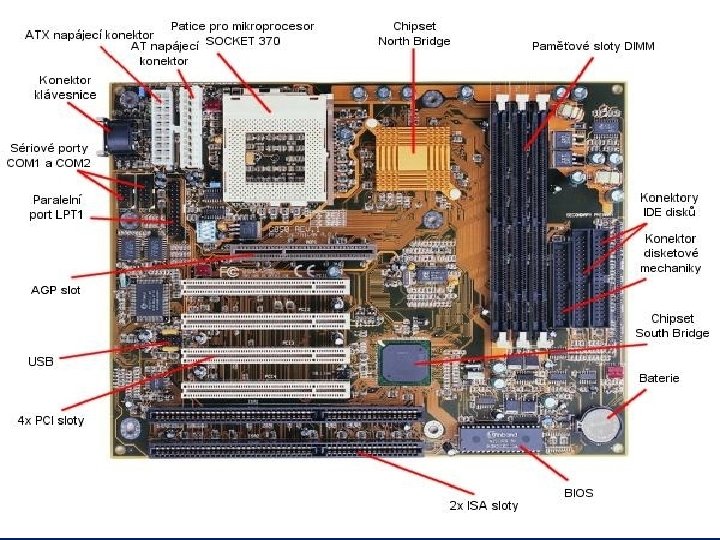 ZÁKLADNÍ DESKA (motherboard) • slouží k propojení ostatních součástek • poskytuje jim elektřinu