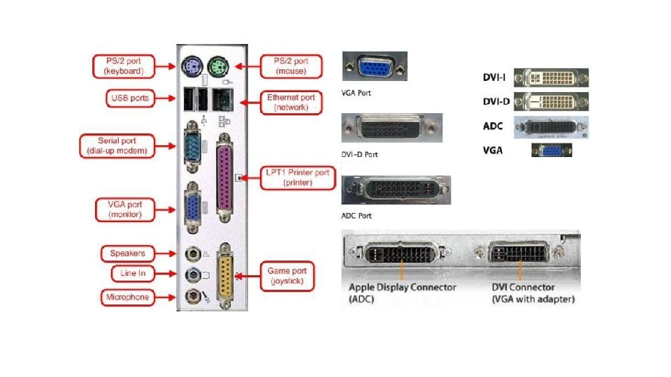 Prídavné karty • sú to externé moduly počítača vo forme karty, ktoré sa zasúvajú do zbernice matičnej dosky • grafická karta - pomocou nej počítač zobrazuje na monitore • sieťová karta - pripojenie do počítačovej siete • zvuková karta - vstup a výstup audiosignálov • TV karta - karta pre príjem TV signálu a pod.