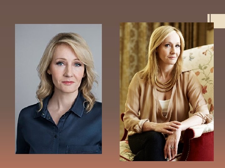 O spisateljici § J. K. Rowling je spisateljica serije romana Harry Potter § Rođena je 31. srpnja 1965. u Yateu u Engleskoj § Osim Harry Pottera napisala je i Zov kukavice, Dudov svilac i mnogo drugih § Neke knjige pisala je pod lažnim imenom , , Robert Galbraith”