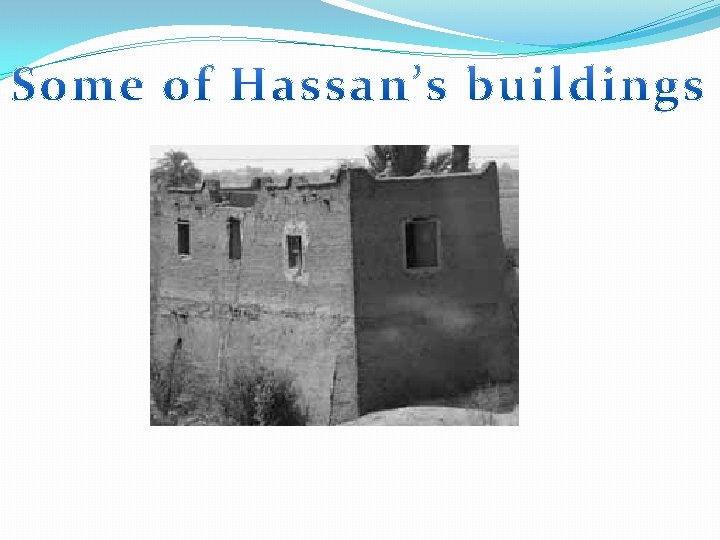 Elements and principles of designs in his work The elements and principles of designs in Hassan Fathy’s work are Line, Texture, Shape and Unity. His work has line from the use of mud bricks. Texture because the buildings have a rough surface. Shape is made by the domed roofs. Finally, unity because his buildings look complete and connected.