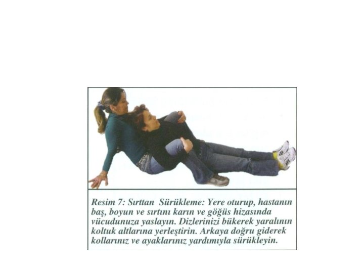 • Hasta/yaralı kalkamayacak durumda ise altına yatarak kaldırılır ve taşınır.