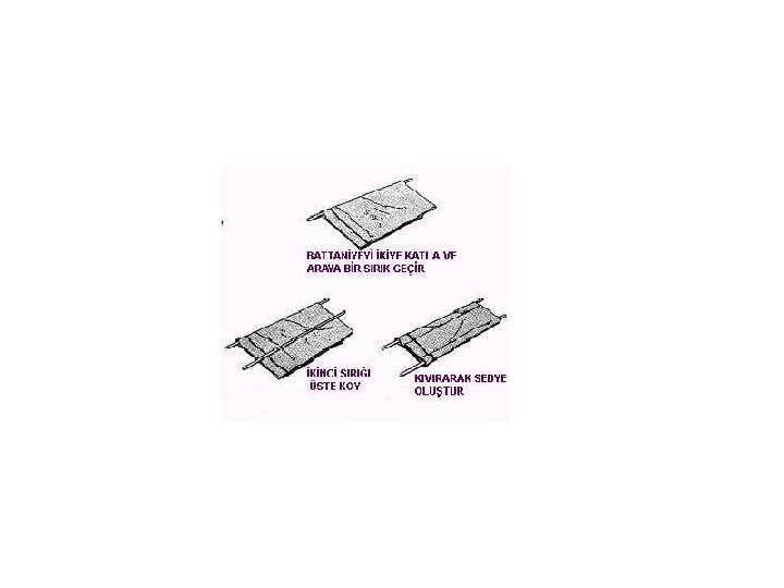 • Bir battaniye ve iki sırıkla geçici sedye oluşturma: – Yeterli uzunlukta iki sırık ile sedye oluşturmak mümkündür.