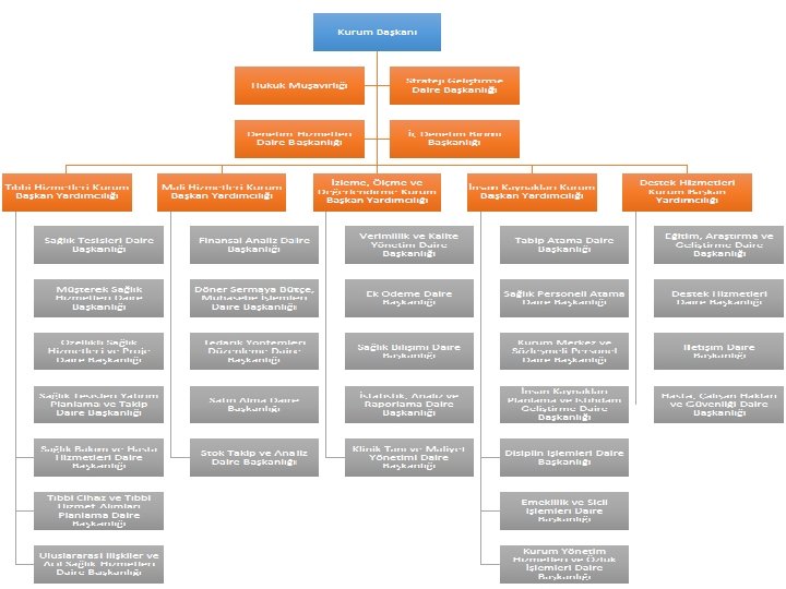 DESTEK HİZMETLERİ KURUM BŞK. YRD. • • Destek hizmetleri daire başkanlığı Eğitim, araştırma ve geliştirme daire başkanlığı Hasta, çalışan hakları ve güvenliği daire başkanlığı İletişim daire başkanlığı