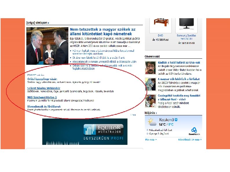 ETARGET hirdetési rendszer * kulcsszavak, honlapok, megyék, érdeklődési kör (célcsoportra jellemző kulcsszavak) szerinti célzás * tartalmi, közösségi honlapokon megjelenő hirdetések: Origo, Iwiw, Femina * szöveges, szöveg + kép hirdetések * CPC szerinti árazás