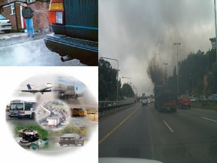Dizel motorlu taşıtlarda ise başlıca kirletici kaynak egzoz borusudur. Dizel motorlu taşıtların egzoz borularından çıkan dumanın rengi, o aracın kirletici potansiyelini göstererek bu anlamda kendini ele verir. Yakıtın tam yanmadığı, araç bakımının iyi olmadığı durumlarda aşağıdaki üç tür duman çıkar ve bu dumanların çıkış sebepleri şunlardır: Siyah Duman: Tam yanmamış yakıt taneciklerinin oluşturduğu dumandır. Uygun yanma koşullarının olmadığını gösterir. Gri-Beyaz Duman: Tam yanma artığı maddelerin oluşturduğu dumandır. Uygun yanma koşullarının olduğunu gösterir. Mavi Duman: Yanmamış yakıt ve yağ karışımı olup genellikle motorun bakıma ihtiyacı olduğunu gösterir. Karbonmonoksit (CO), partikül madde (is, toz, tanecik vs. ) ve hidrokarbonlar trafikteki araçların egzoz gazlarından kent atmosferine bırakılan genel hava kirleticilerdir. Benzinli taşıtlarda kurşun (Pb) bileşikleri de diğer bir önemli kirleticidir.