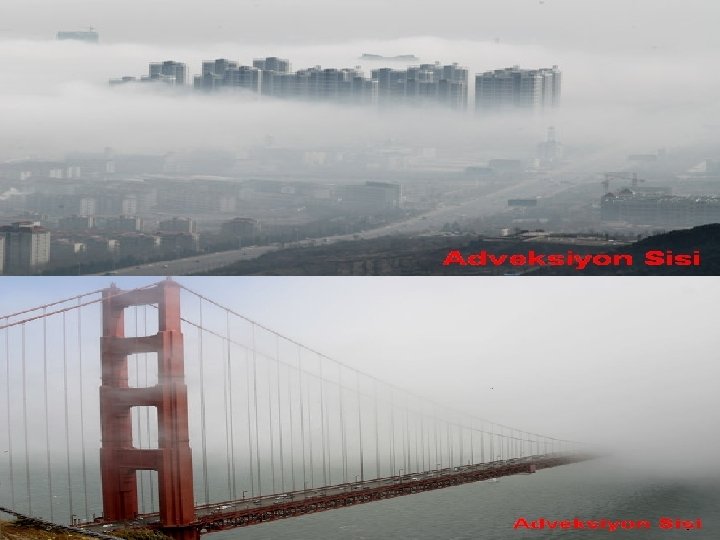 Adveksiyon Sisi: Adveksiyon sisi, soğuk yer yüzeyinin üzerinde sıcak ve nemli hava kütlesinin yerleşmesi ile oluşur. Soğuk yer yüzeyine sıcak ve nemli hava temas ettiğinde sıcak havanın alt katları üst katlarına oranla daha çok soğur. Böylece etkisi sürekli artan bir sıcaklık inversiyonu oluşur. Yoğunlaşma ve sis oluşumu en alçak hava katlarından başlar.