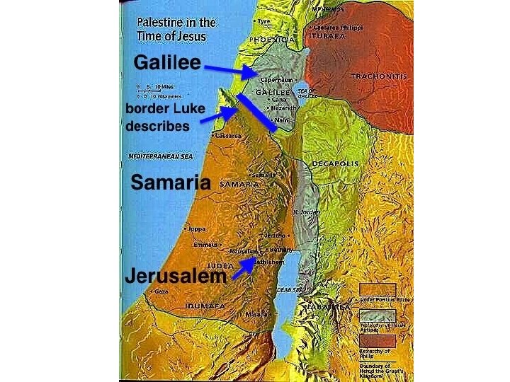 Luke 17: 11 Now on His way to Jerusalem, Jesus traveled along the border between Samaria and Galilee. 12 As He was going into a village, ten men who had leprosy met Him. They stood at a distance 13 and called out in a loud voice, “Jesus, Master, have pity on us!”