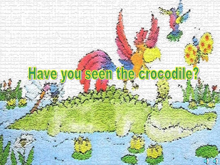 “Have you seen the crocodile? ” crocodile asked the parrot asked the dragonfly and the bee and the butterfly and the hummingbird. “No, ” said the Frog.