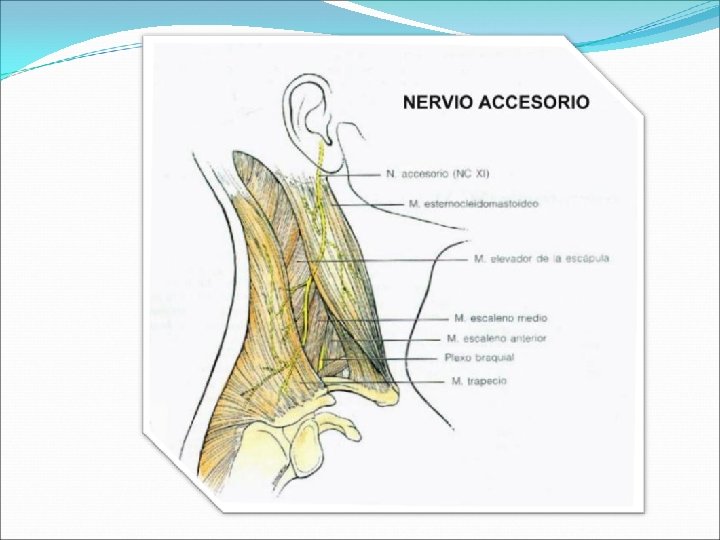 RAIZ CRANEAL • FORMADA POR AXONES DE NEURONAS DE LA PORCION INFERIOR DEL NUCLEO AMBIGUO RAIZ ESPINAL • ESTA FORMADA POR LOS AXONES DE NEURONAS DEL NECLEO ESPINAL DEL ASTA ANTERIOR DE LA MEDULA ESPINAL DE LOS SEGMENTOS C 1 A C 5