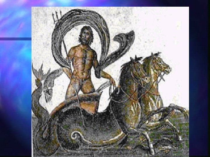 POSEIDÓN, DIOS DEL MAR: EL REINO DE LA EMOCIÓN Y DEL INSTINTO n n n Hijo de Cronos y Rea. Neptuno para los romanos. Poseidón es representado con barba y una figura majestuosa. Va acompañado de un tridente y un delfín. Puede ir montado en un brioso carro tirado por extraño seres marinos y rodeado por los tritones, que anuncian su llegada con un instrumento musical de sonido estruendoso.