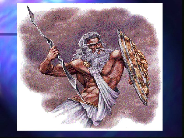 ZEUS, DIOS DEL CIELO: EL REINO DE LA VOLUNTAD Y DEL PODER n n n Zeus dios del cielo y soberano de los dioses Olímpicos. El arquetipo del padre. Júpiter para los Romanos. Hijo de Cronos y Rea. Normalmente se le representado en un trono de oro, con el rayo en una mano y un cetro en la otra, y a sus pies un águila con alas desplegadas.