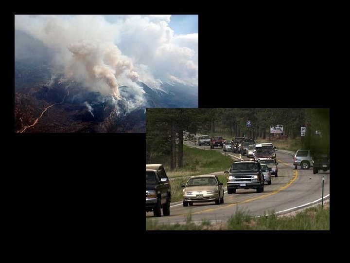 Monday, June 17, 2002 More evacuations were ordered today affecting 450 properties or about 1, 000 people living on the fire’s edge south of West Creek in Douglas County and north of Woodland Park in Teller County. The fire sprinted a quarter mile in four minutes during its run south and jumped a containment line at the southeastern edge, about 12 miles northwest of Woodland Park So far, the fire has cost $11. 4 million and blazed 102, 895 acres with an estimated 2, 200 personnel battling the fire.