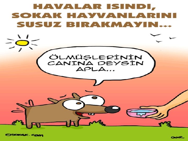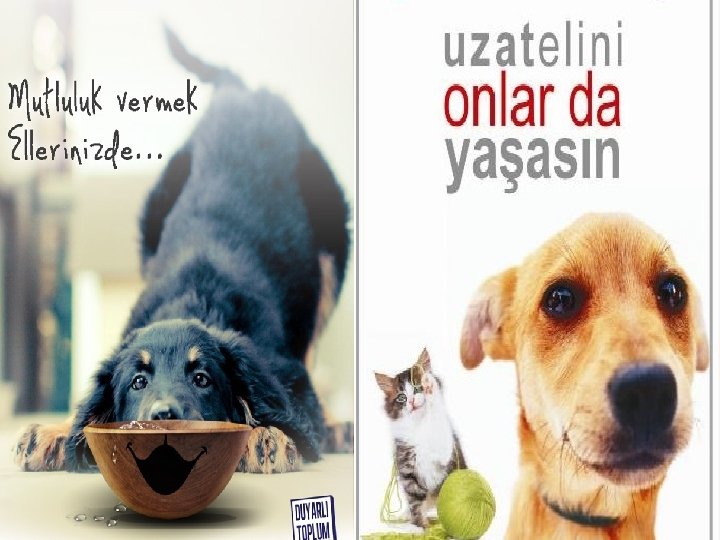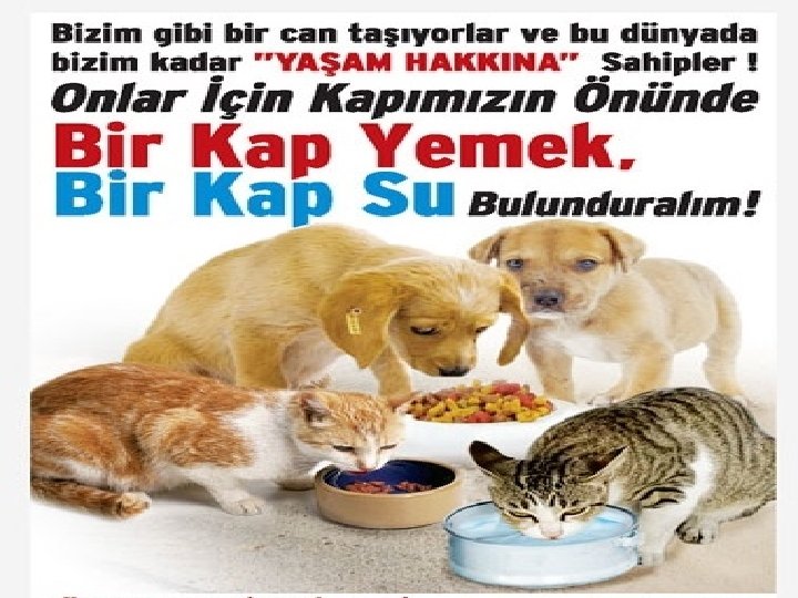 Biz Ne Yapabiliriz ? HAYVANLARIN KORUNMASI İÇİN NELER YAPALIM ü Bakımını üstlendiğimiz hayvanların yiyeceklerini, içeceklerini düzenli verelim. Aşılarını zamanında yaptıralım. ü Hayvanlara eziyet edilmesi insanlıkla bağdaşmaz. Öte yandan bu davranış yasalarımıza göre suçtur. Bu suçu işleyenleri uyaralım. Gerekli mercilere şikayet edelim. ü Kuşların, karıncaların yuvalarını bozmayalım. Avlanma mevsimi dışında kesinlikle av hayvanlarını avlamayalım. ü Hayvanları korkutmayalım, ürkütmeyelim. Onlara şakadan da olsa eziyet etmeyelim. ü Bakamayacağımız hayvanları eve almayalım. ü Yiyecek artıklarımızı, özellikle ekmeği, çöplüğe atacağımıza yakınımızda bulunan hayvan besleyicilerine verelim.