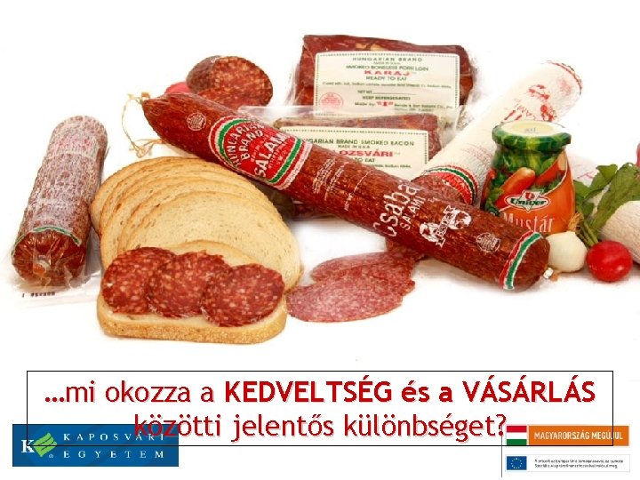Tisztáznunk kell a fogalmakat Az emocionálisan döntő fogyasztó már nem A racionálishanem fogyasztó következetesen és termékeket, olyan márkákat vásárol, körültekintően vásárol. Alapvetően figyel a amelyek üzeneteivel azonosulni tud, biztosítva „jó valamiféle vétel” lehetőségére, jellemzően fontos ezzel érzelmi többletet. A fogyasztás számára a termék ára és miatt kényelmes nemcsak a termék jellemzői történik, s A racionális, vagy az emocionális u m z i t beszerezhetősége. o i r hanem az azzal kapcsolatos i pat érzésekért is. ó megközelítés kerül előtérbe? t z s a y Fog Import élelmiszer? Magyar élelmiszer? Nem fontos a termék eredete!