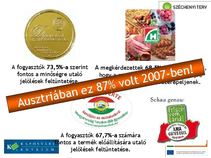 ! k ! ! ü n s n e o hogy a csomagoláson származási helyre t n b e n 7 b o 0 f g 0 e k 2 vonatkozó információk szerepeljenek. a t m l n o k ó i v t z í z % s b 7 a 8 k y u z g e o % f 3 n 2 a 7 b e 6 á z i s l r s t ő ö z b s d u n 0 M 1 Ai A fogyasztók 73, 5%-a szerint fontos a minőségre utaló jelölések feltüntetése. A megkérdezettek 68, 5%-a szerint fontos, A fogyasztók 67, 7%-a számára fontos a termék előállítására utaló jelölések feltüntetése.