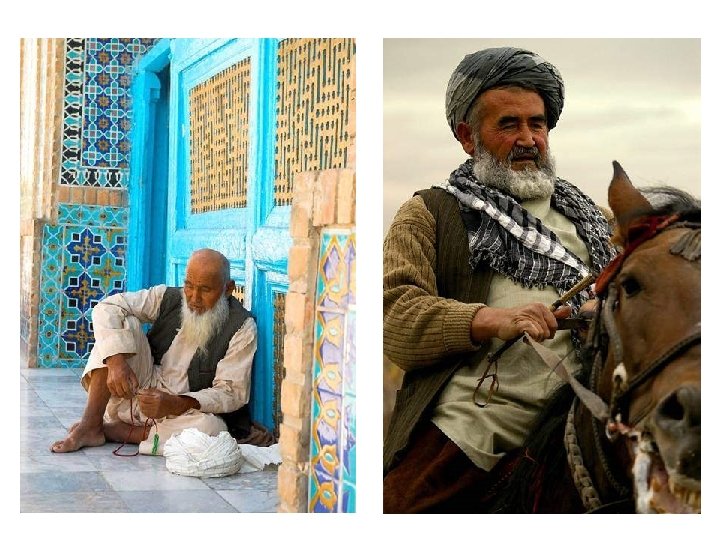 Hazara - As tradições dos hazares demostram que originam-se dos mongóis. Segundo suas lendas escritas eles procedem do exército de ocupação de Gensis Khan. Desde o século XVI, os hazares haviam se estabelecido na zona montanhosa que atualmente ocupam, e por causa da inacessibilidade da região e ao seu espírito guerreiro conseguiram manter a independência de seu território até 1892, quando foram derrotados e ficaram debaixo da administração do Afeganistão. Dedicam a maior parte das terras cultivadas ao trigo, cevada, folhagens ou verduras, e nas zonas meridionais ao milho. Próximo aos povoados criam vacas , ovelhas, cabras para leite e carne Pathan - Os pathanes representam 53% da população Afegã, e se encontram no leste do país. Uma quarta parte da população afegã é de fala persa e o resto está dividido em umas 40 tribos. Os pathanes formam a parte mais dominante da sociedade. São aqueles que tiveram a melhor educação e são mais ativos em cada área de função pública. Desde a invasão russa em 1979 pelo menos a quarta parte da população afegã se refugiou no Paquistão, Irã e outros lugares. Entre estes refugiados encontram-se os pathanes. Os que ficaram no Afeganistão vivem uma situação muito difícil.