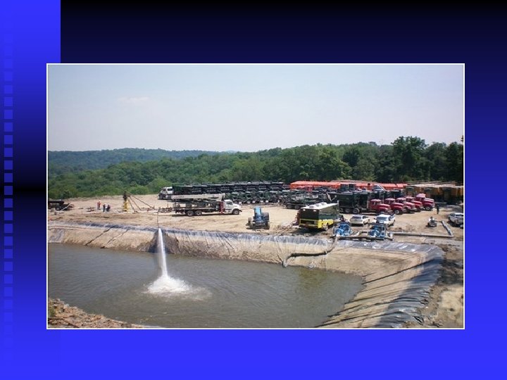 Current Methods of Treatment: n n n 1) Treatment & discharge into surface waters – Usually is treated at a privately owned industrial wastewater treatment facility which removes pollutants. OR Sent to municipal sewage treatment plants, which aren’t designed to handle such waste. Actually just dilute the pollutants rather than removing them. Both methods discharge the treated waste into surface waters.