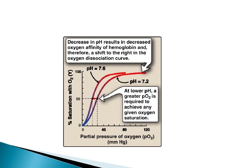Bohr effect an increase in protons (or a lower p. O 2) shifts the equilibrium to the right (favoring deoxyhemoglobin), whereas an increase in p. O 2 (or a decrease in protons) shifts the equilibrium to the left.