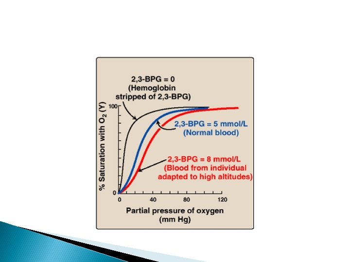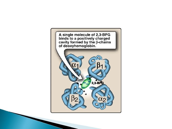 Function of 2, 3 BPG 2, 3 -BPG decreases the oxygen affinity of hemoglobin by binding to deoxyhemoglobin but not to oxyhemoglobin. Thus helps in unloading of HB