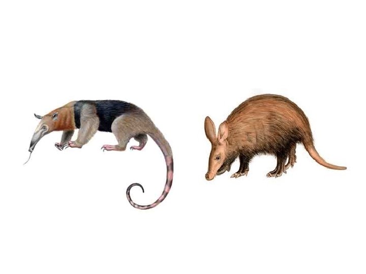 Cerdo hormiguero Clase: mamíferos Distribución: África (sabana). Alimentación: Termes y hormigas. Hábitos: nocturnos Adaptaciones anatómicas: Patas delanteras cavadoras provistas de dedos con fuertes uñas. Hocico largo y cilíndrico, con una pequeña abertura bucal por donde asoma la lengua. Esta es delgada y pegajosa. La introducen por las galerías de termiteros y hormigueros y la retiran cubierta de presas.