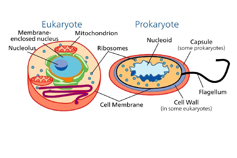 Hücrelerin Sınıflandırılması Prokaryotlar - Kalıtım materyalini çevreleyen zar sistemi yok. - Nükleus yok. - Zarla çevrili organel yok. - Bakteriler, algler, riketsiyalar, vb. Eukaryotlar - Kalıtım materyali zarla çevrilidir. - Nükleus var. - Zarla çevrili organel var. - İnsan, hayvan, bitki, fungus, vb.