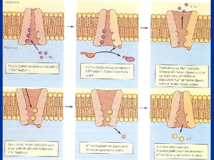 Sodyum hücre dışında içine oranla 10 -15 kat daha fazla bulunur. Potasyum yoğunluğu ise hücre içerisinde 30 -35 kat daha fazladır. Buna rağmen sodyum-potasyum pompası ATP enerjisi ile bu iyon dengesini ayarlar. Sodyum-potasyum pompası hayvan hücrelerinde en aktif ve en yaygın iyon pompası olup hücrelerde harcanan ATP enerjisinin %2530’unu buralarda harcar.