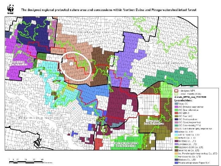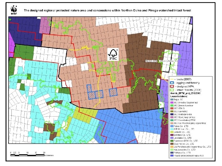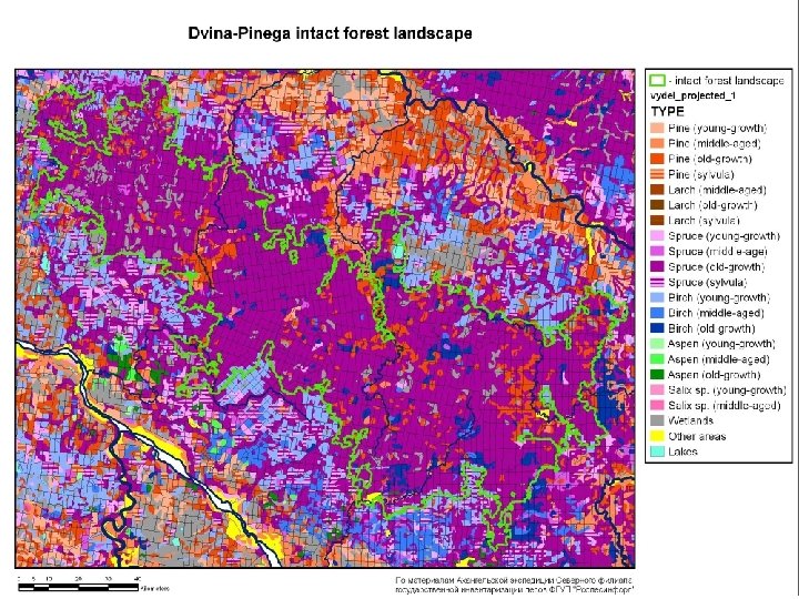 Deforest area (mainly caused by clear cutting) 2001 -2007 (red color) Onezhskij peninsula The most problematic areas are Onezhskij peninsula and Dvina. Pinega watershed Dvina-Pinega intact forest massif GIS layer from Map Of Centre And North European Russia, 2008 (http: //www. forestforum. ru/gis. php)