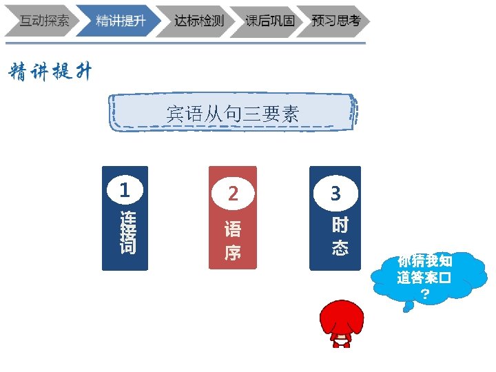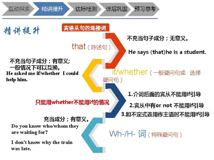 句 从 语 宾 为 否 是 子 句 列 下 断 判 He says(that)he can speak English. He can speak English
