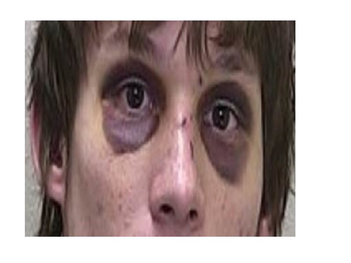 Raccoon eyes Bilateral periorbital ecchymosis also known as "raccoon eyes". Bilateral = "both sides", periorbital="around the orbit (eye), eccyhmosis=bruise". Bruising around the eyes on both sides. Periorbital ecchymosis secondary to blood leaking from the anterior fossa of the skull.