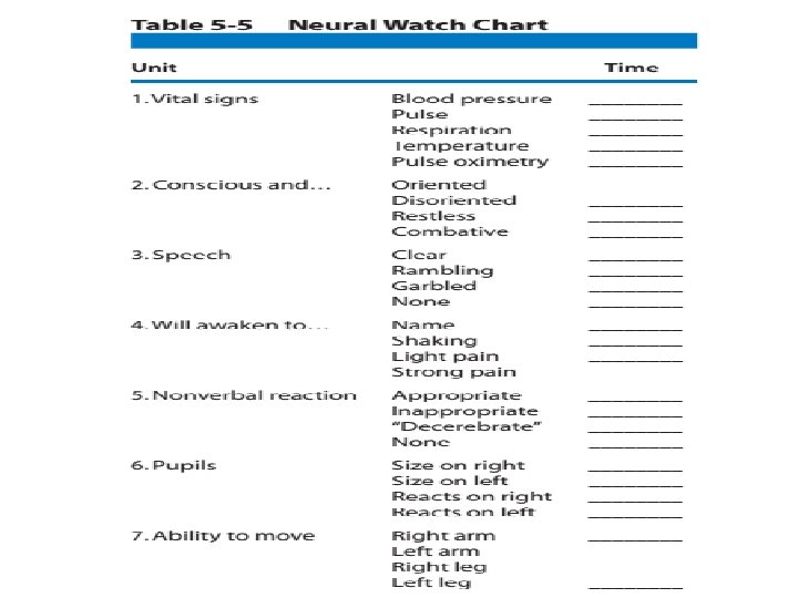 DAY-OF-INJURY REFERRAL 1. Loss of consciousness on the field 2. Amnesia lasting longer than 15 minutes 3. Deterioration of neurological function* 4. Decreasing level of consciousness* 5. Decrease or irregularity in respirations* 6. Decrease or irregularity in pulse* 7. Increase in blood pressure 8. Unequal, dilated, or unreative pupils* 9. Cranial-nerve deficits 10. Any signs or symptoms of associated injuries, spine or skull fracture, or bleeding*